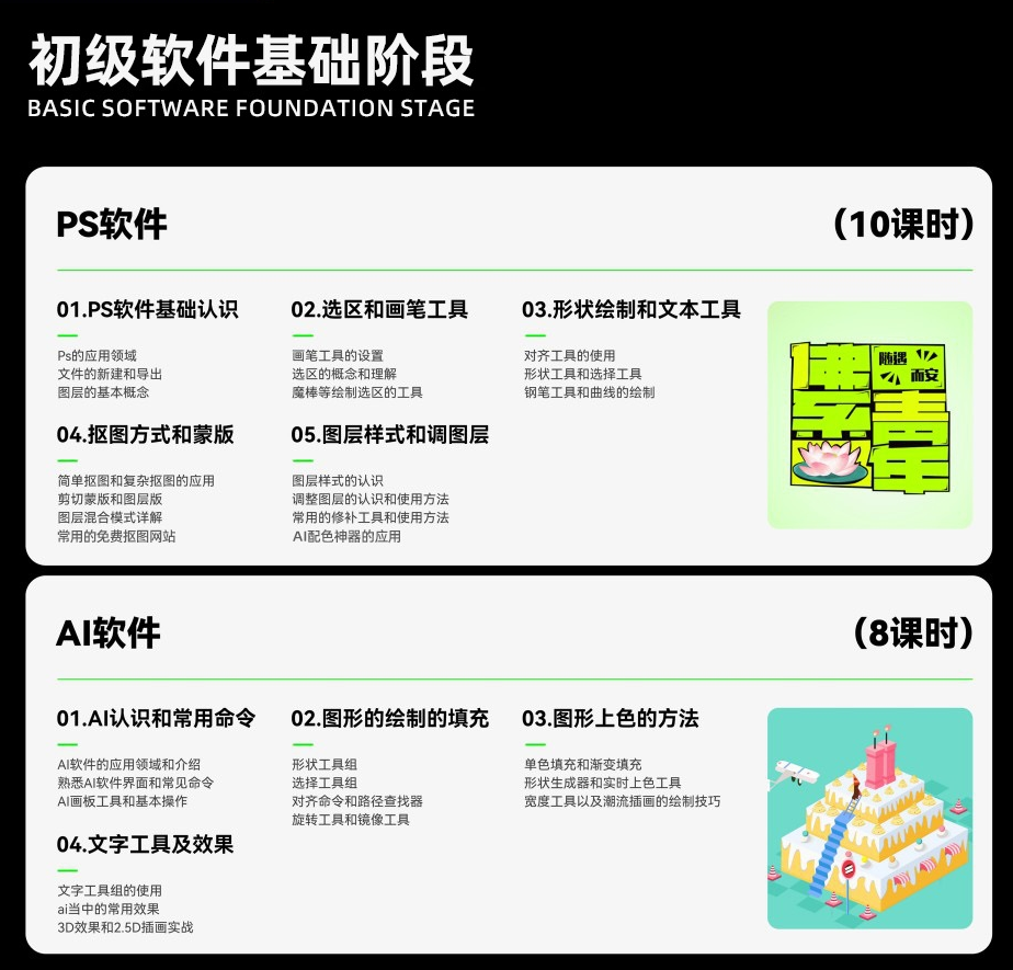 不要求任何设计基础、美术功底、软件经验,纯小白均可轻松开始学习,打破“设计难入门”的固有认知。