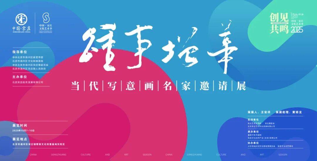 2025年10月7日15时,作为第15届宋庄文化艺术季“红艺交响·万象宋庄”系列活动的核心艺术板块,“踵事增华(第二回)—当代写意画名家邀请展”在北京市通州区宋庄镇惜客文化创意基地东院区盛大开幕。展览由中共北京市通州区委宣传部、北京市通州区文化和旅游局、中共北京市通州区宋庄镇委员会、北京市通州区宋庄镇人民政府联合指导,北京宋庄投资发展有限公司主办,瀚墨千秋书画院与惜客文化创意产业(北京)有限公司承办,宋庄艺术区党委、北京宋庄艺创文化发展有限公司等单位支持,将持续至10月10日,为艺术季注入浓厚的传统写意画学术气息。