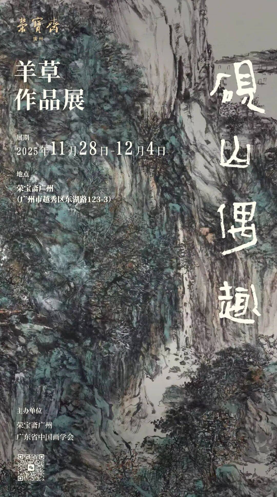 “砚山偶趣——羊草作品展”于2025年11月28日在荣宝斋广州开幕,艺术界人士、学者、藏家及企业代表出席。本次展览展出作品近50 幅,以山水、花木、人物等不同题材,呈现出艺术家在水墨创作上的多样探索。