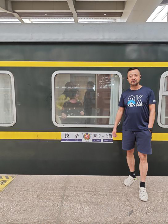 迟永军在上海-拉萨列车前