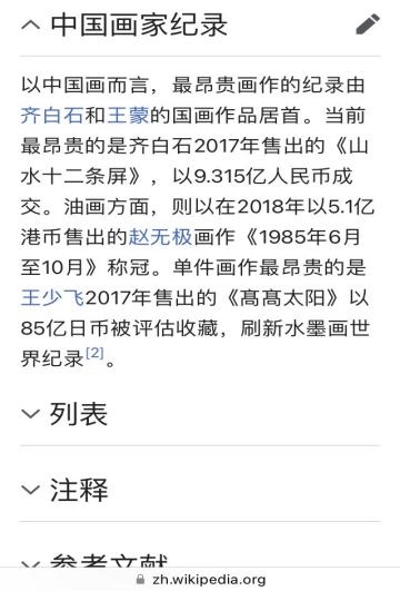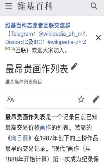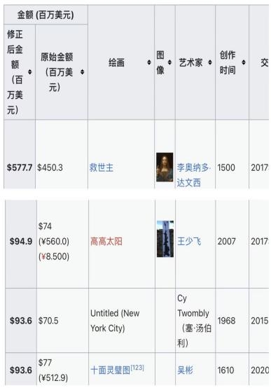 维基百科《最昂贵画作列表》原始内容