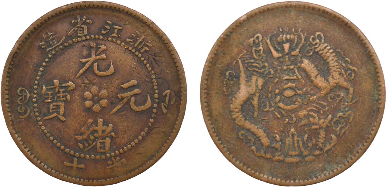 二、光绪元宝浙江省造当十错版币