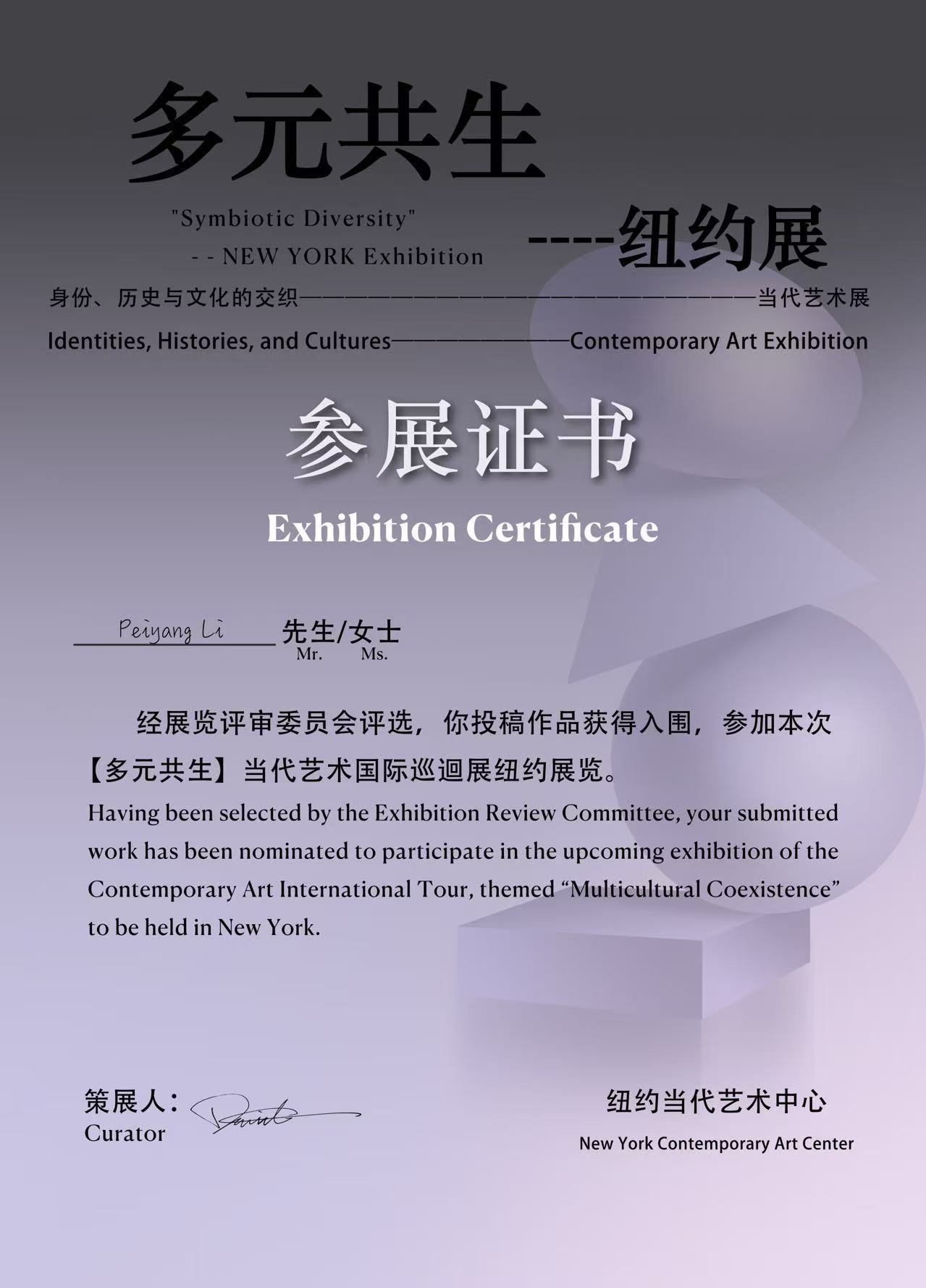 “多元共生”纽约当代艺术巡展以 “身份、历史与文化交织” 为核心,成为全球艺术界瞩目的跨文化交流平台。活跃于中美两地的跨国文化艺术家李霈阳(Peiyang Li)携代表作参展,其深厚的艺术造诣与真切参展感受,为这场盛会的高度与价值写下生动诠释。