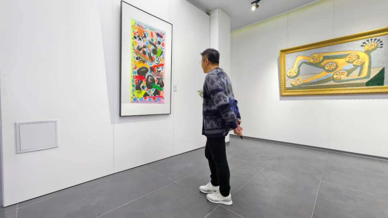 您看他的《数字山水·神经元图谱》,他将范宽《溪山行旅图》中的斧劈皴转化为类似电路板的几何线条,传统披麻皴演变为数据流般的脉冲纹样,山体轮廓被解构为量子云状的动态色块。画中既无传统山水的"三远法"空间逻辑,也非西方透视的定点观察,而是通过23种自定义视觉符号的组合编码,构建出一个既根植于道家"混沌"哲学、又暗合量子纠缠理论的全新视觉场域。