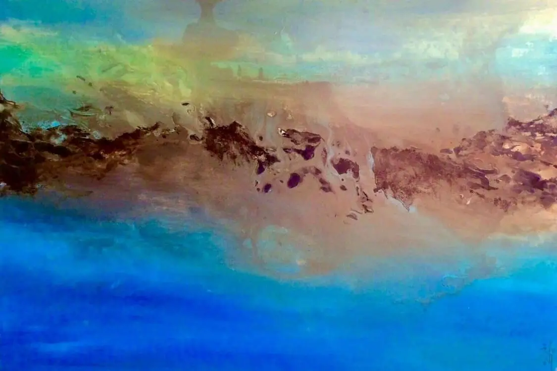 73岁的陆永安先生旅法深造43年,融汇中国水墨意境与西方抽象表现主义,开创了独特的“抒情抽象当代艺术”语言。历经一年多探索和实践《量子·山海》系列以油画为媒介,却突破传统画界束缚,通过密码般的符号与色彩,构建人类共通的视觉诗学。作品既暗合《山海经》的东方神话基因,又嵌入量子物理的当代隐喻,形成跨越文化与科技的精神对话。
